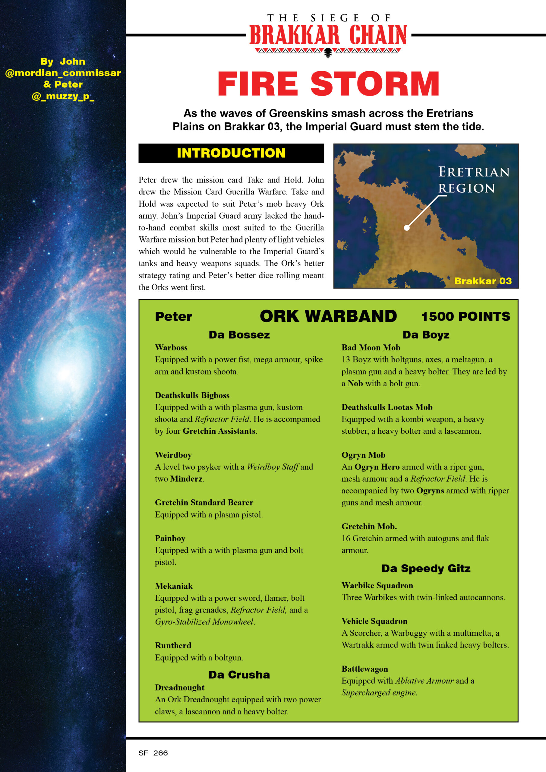 / Brakkar 03 – Period B / By willpullengraphicdesign@gmail.com Fire Storm Peter’s Orks (Take and Hold) vs John’s Imperial Guard (Guerilla Warfare)