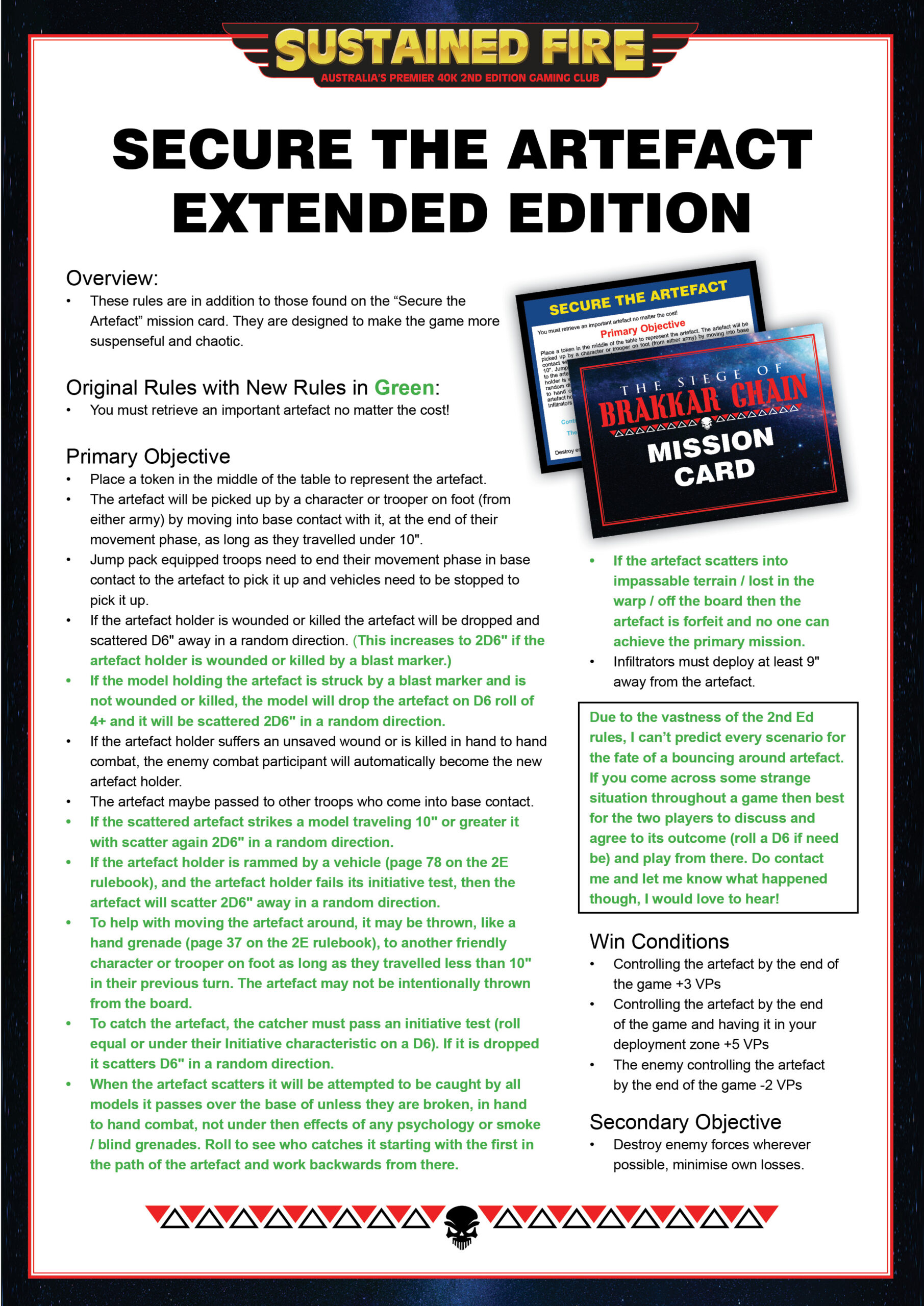 When creating the six new mission cards for the Siege of Brakkar Chain Players Pack, I tried to design them so all of the rules would fit neatly onto the card and they wouldn’t get bloated with needing additional pages of rules. However… we played a fun game of 1 v 1 v 1 recently “Threes a Crowd” where we were all playing a joint “Secure the Artefact”. During the game I was mentioning some extra rules I was considering whilst designing this mission which would make the game more suspenseful and chaotic. Might be fun to try out.